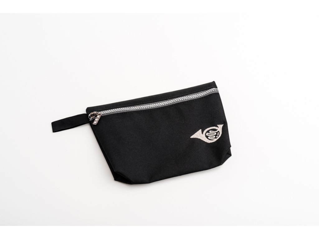 Taštička s vyšitým lesním rohem a stříbrným zipem